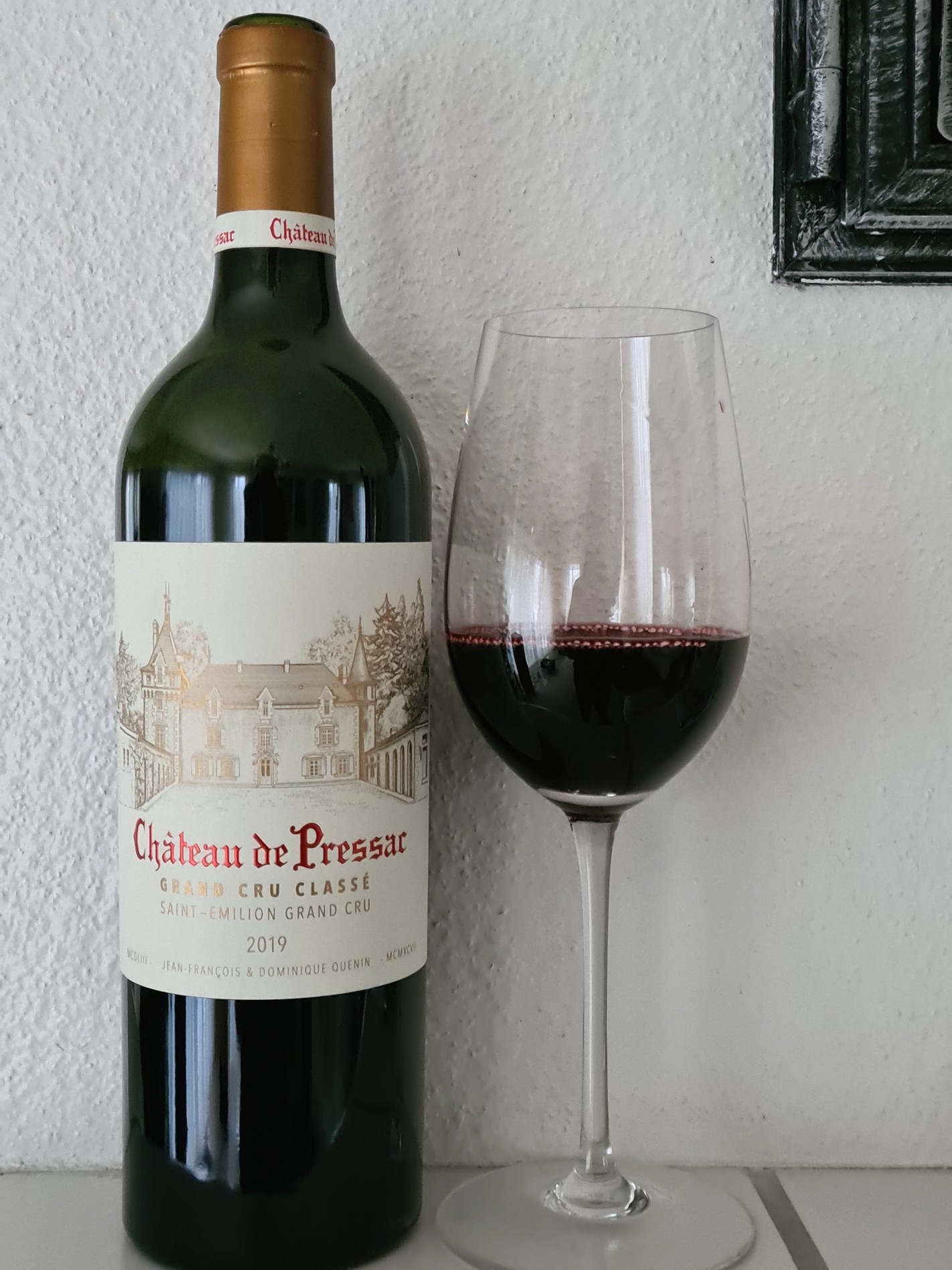 2019Château de Pressac Grand Cru Classé, Saint-Emilion Grand Cru. 14,5 Vol% Alc. Assemblage 71% Merlot, 16% Cabernet Franc, 9% Cabernet Sauvignon, 2% Carmenière und 2% Malbec.