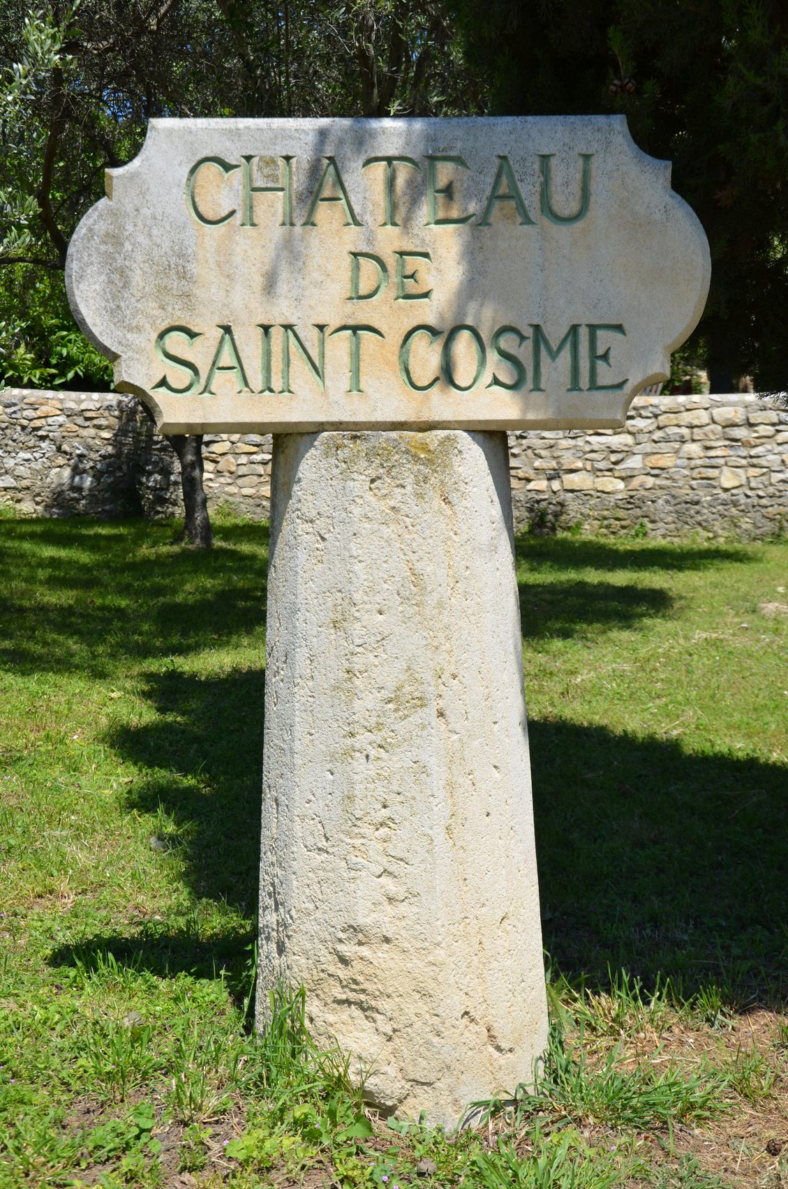 Das Château, das mehr einer Toskanischen Villa gleicht, liegt unterhalb, nicht ganz ein Kilometer von Gigondas entfernt. Saint Cosme ist in erster Linie nicht nur Produzent, sondern auch Négociant, das bedeutet, es werden nicht nur Trauben oder Wein aus eigenen Lagen verarbeitet, sondern auch solche die zugekauft werden. Es lohnt sich daher immer solche Weine, vor allem auch preislich genauer zu vergleichen. Das Château verbirgt sich hinter Wald und hohen Mauern, Besucher werden weit möglichst ferngehalten.