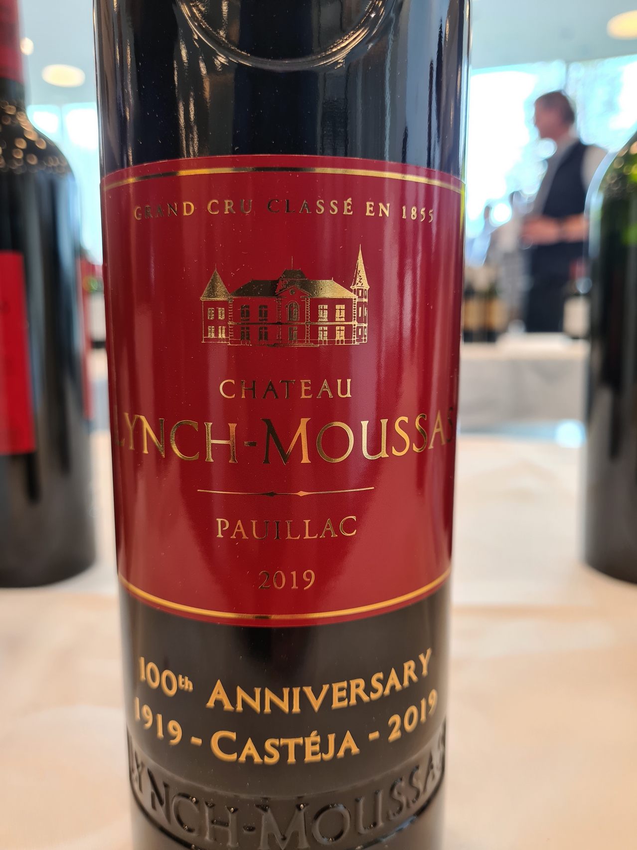 2019Château Lynch Moussas 5ème Grand Cru Classé Pauillac. Die Familie Castéja besitzt das Château mit diesem Jahrgang seit 100 Jahren, daher wurden die Flaschen mit einem Jubiläumsetikett versehen.