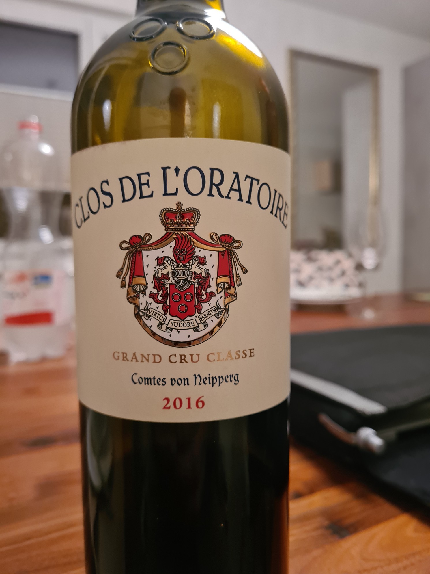 | 2019 | Clos de l’Oratoire Grand Cru Classe Saint-Emilion AOC. 14,5Vol%Alc. Ernte 23. September bis 07. Oktober 2019. Ertrag 51 hl/ha. Assemblage 81% Merlot und 19% Cabernet Franc. Ausbau 16 Monate in Barriques davon 50% neue. Abgefüllt am 11. + 12. Mai 2021. |