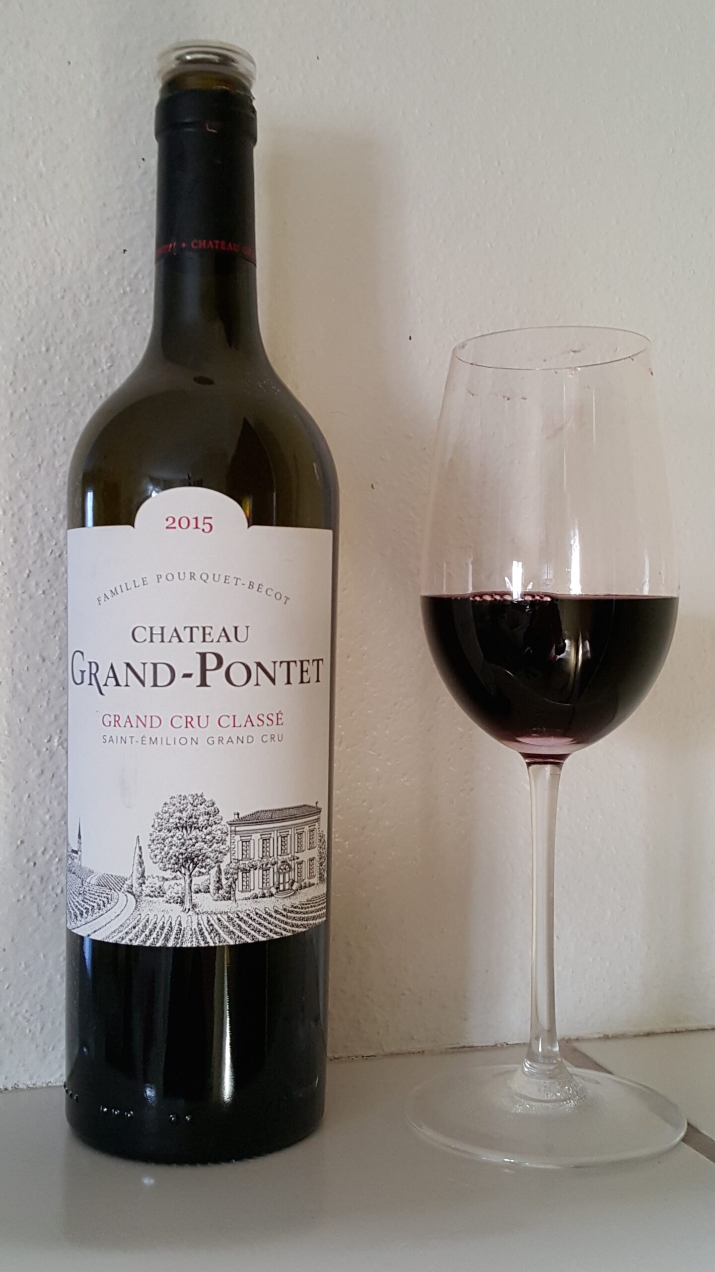 2015 | Château Grand-Pontet. 81% Merlot, 12% Cabernet Franc und 7% Cabernet Sauvignon. Tief dunkles Kirschrot. Das Bouquet eher verschlossen, aber breit mit Bitter-Noten im Vordergrund und frischen schwarz-fruchtigen Aromen. Die auf der Flasche angegebenen 15 Vol% Alkohol, sind als solches direkt nicht zu erkennen und auch nach 2/3 der Flasche, bekam ich keinen Suff. Für mich fühlt sich dieser eher als Mittelgewicht an, was er aber mit 15 Vol% Alc. eigentlich nicht sein kann. Der Wein wirkt anfangs weich, bricht nach hinten aromatisch ab und wird dann trocken. Aromatisch fallen wieder bitter- und etwas pflaumenartige Aromen auf. Sicher nicht grossartig, aber im Moment schwer zu beurteilen. Am 30-09-2017 15,5/20 aus dem Sommelier/Chianti/Riedel-Glas. |