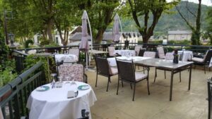 | 2017 | Mein erster Besuch am 25-06-2017. Parkplatz vor dem Haus, er ist sehr schmal und für etliche Leute, wie ich sah, nur mit Stress anzufahren. Dann geht’s eine hohe Treppe hinauf und es folgt der Trip in die Vergangenheit. Dies bringt Gutes wie Unangenehmes. Das Gute, der Portier hilft, im Hotel hat es ein Lift und das Restaurant hat mir sehr gut gefallen. Gerade noch OK, ist die Einrichtung des Hotels. Schwach und mangelhaft sind die Sauberkeit, sowie der Lärm der Klimaanlage auf der Rückseite des Hauses. Sie schaltet den ganzen Tag, als auch in der ganzen Nacht, an und ab. Das Essen war ok und wurde dank der angenehmen Balkonstimmung aufgewertet. Beim Wein ging, der Weisswein der Domaine Trimbach wegen Oxidation retour und beim Roten ging die erste Empfehlung auch in die Hosen. Nach dem Essen noch der Trip durch die Gemeinde. Wobei es dort nur noch zwei Punkte gibt, für die es sich lohnt, sie anzusehen. Zum Ersten ist es die alte Brücke, die zu Fuss vom Hotel aus in etwas 20 Minuten zu erreichen ist und zum Anderen, ist es dieser fast atemberaubende Aussichtspunkt über die Stadt, von dem aus auch zur linken Seite, der Bahnhof und die alte Brücke zu sehen ist. Leider gibt es keinerlei Hinweistafeln, die dort hinauf führen, daher ist dieser Weg nur mit einer Karte oder über Koordinaten zu erreichen. Ich habe zweimal einen Anlauf von unten her gebraucht, bis ich die richtige Route fand. Vermutlich hat dies zwei Gründe, dass es so ist. Der eine, man fährt durch Wohnquartier mit Einfamilienhäuser und zum anderen lädt der steil abfallende Abgrund die Lebensmüden ein. Die Frage, gehe ich dort nochmals hin, so würde ich antworten, wenn der Weg nicht dran vorbeigeht und eventuell noch wegen des Restaurants, das ich nur sah, aber von der Stimmung aus noch nicht erleben konnte. |