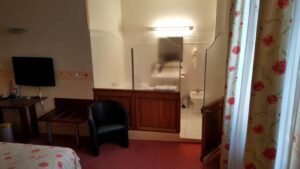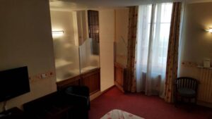 Das Hotel liegt an der Hauptstrasse zum Bahnhof hinunter. Die Fronseite liegt also direkt an der Strasse und etwa 100 Meter in Sichtweite zur Bahn. Denken Sie jetzt aber nicht, hinten heraus sei es ruhiger, nein, denn da sind unten die Klimaanlagen montiert und die geht Tag und Nacht an und ab. Also lieber Front oder Seite, dann ist wenigstens zwischen 12 bis 6 Uhr einigermassen Ruhe im Hotel. Das Hotel selber, wirkt wie im Film, eine Zeitreise in die Vergangenheit. Dusche und Bad sind im Schlafzimmer durch eine halbhohe Wand mit Glas abgetrennt. Das WC ist separat, dies gesehen bei den Zimmer über 100 Euros. Die Zimmer sehen nicht wirklich sauber aus und wirken verbraucht. Das Restaurant ist sehenswert für Leute, die Antikes mögen und der Balkon, auf dem im Sommer bei schönem Wetter serviert wird, eine gute Aussichtslage. Das Essen hat höchstens Bistro-Qualität und passt so noch auf den Balkon, aber kaum ins Restaurant. Auch die Weinkarte ist mehr als schwach anzusehen. Sehenswert in der Gemeinde Cahors, sind eigentlich nur die grosse Brücke und der Bahnhof, der wie einer Rostlaube gleicht. Vermutlich dürfte in der Schweiz so etwas nicht einmal angefahren werden.
